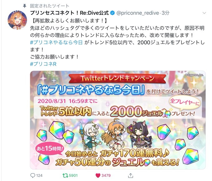 ジュエル3000個プレゼント いつも プリンセスコネクト Re Dive をプレイしていただき ありが プリコネrの注目ツイート ツイ速クオリティ Twitter